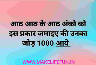 aath aath ke aath anko ko is prakaar jamaie kee unaka jod 1000 aaye ?